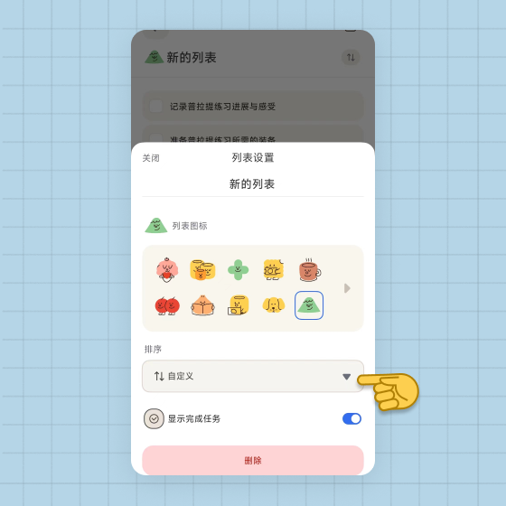 注:只能在创建的列表中进行自定义上下排序调整,【今日】【逾期】【所有】视图中均不支持